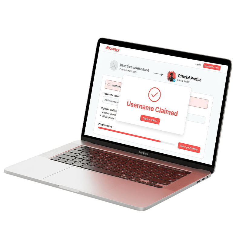 At Discovery Music Group, we assess the status of the username you want, review your eligibility, and manage the full claim process on your behalf. Whether the handle is inactive, banned, or held by a squatter, we know the correct channels to work through – and we only proceed when we are confident we can deliver.